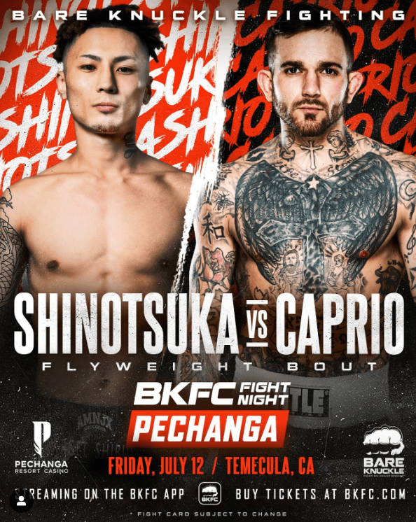 Tatsuki Shinotsuka 12 Temmuz’da, Kaliforniya Temecula’da düzenlenecek olan, BKFC dövüş gecesinde ringe çıkacak. Kendisi boks debutunu 14 Aralık 2016’da Izuki Tomioka’ya karşı yaptı ve maçı puanlamada kaybetti. Bu maçtan sonra üç maça daha çıkıp, hepsini kazandı. Maçlardan ikisini ilk rauntta nakavt ile kazandı.
