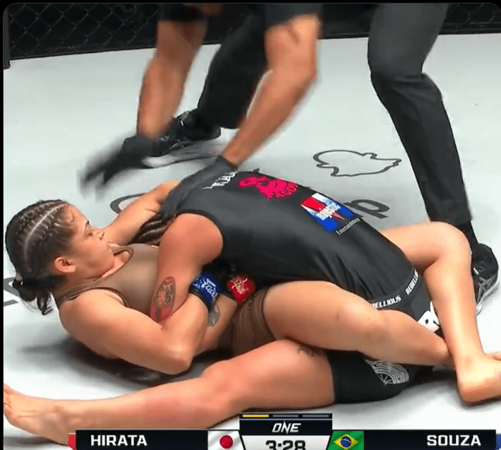 24 yaşındaki MMA dövüşçüsü Itsuki Hirata, ilk rauntta giyotin kilidiyle Victoria Souza’ya kaybetti. Giyotin kilidine karşı pes etmeyerek, bayıldı. Böylece üst üste üçüncü mağlubiyetini almış oldu.