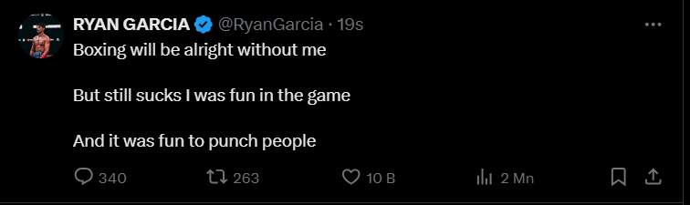 Ünlü boksör Ryan Garcia, dün X hesabından emekliliğini açıkladı.